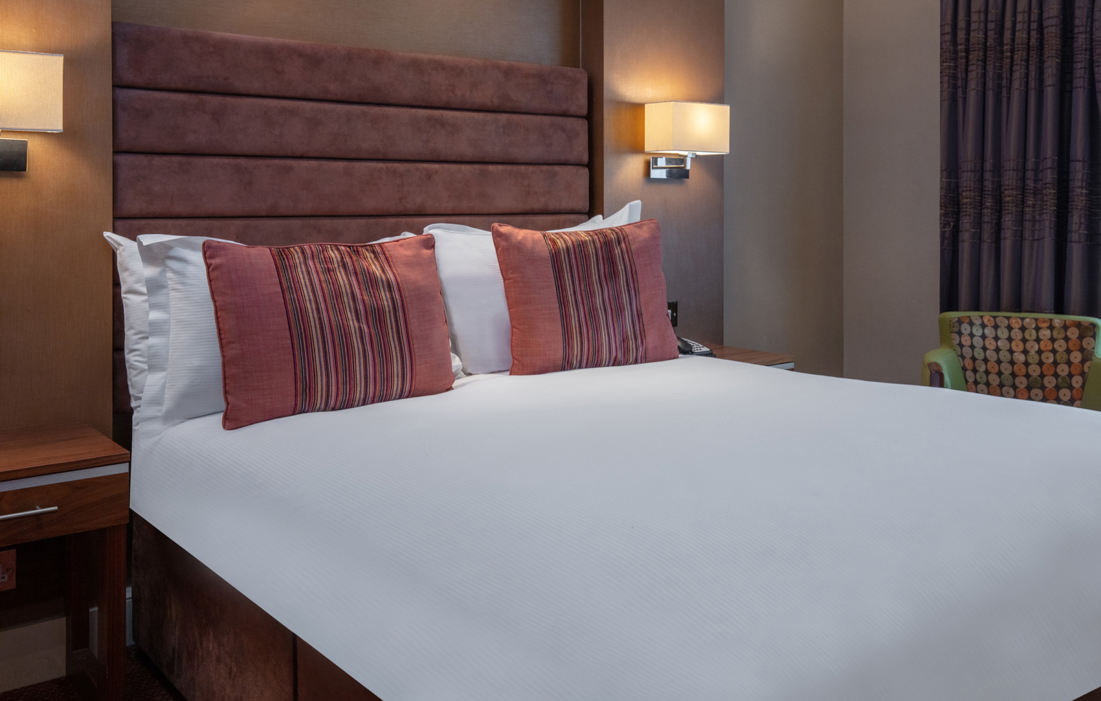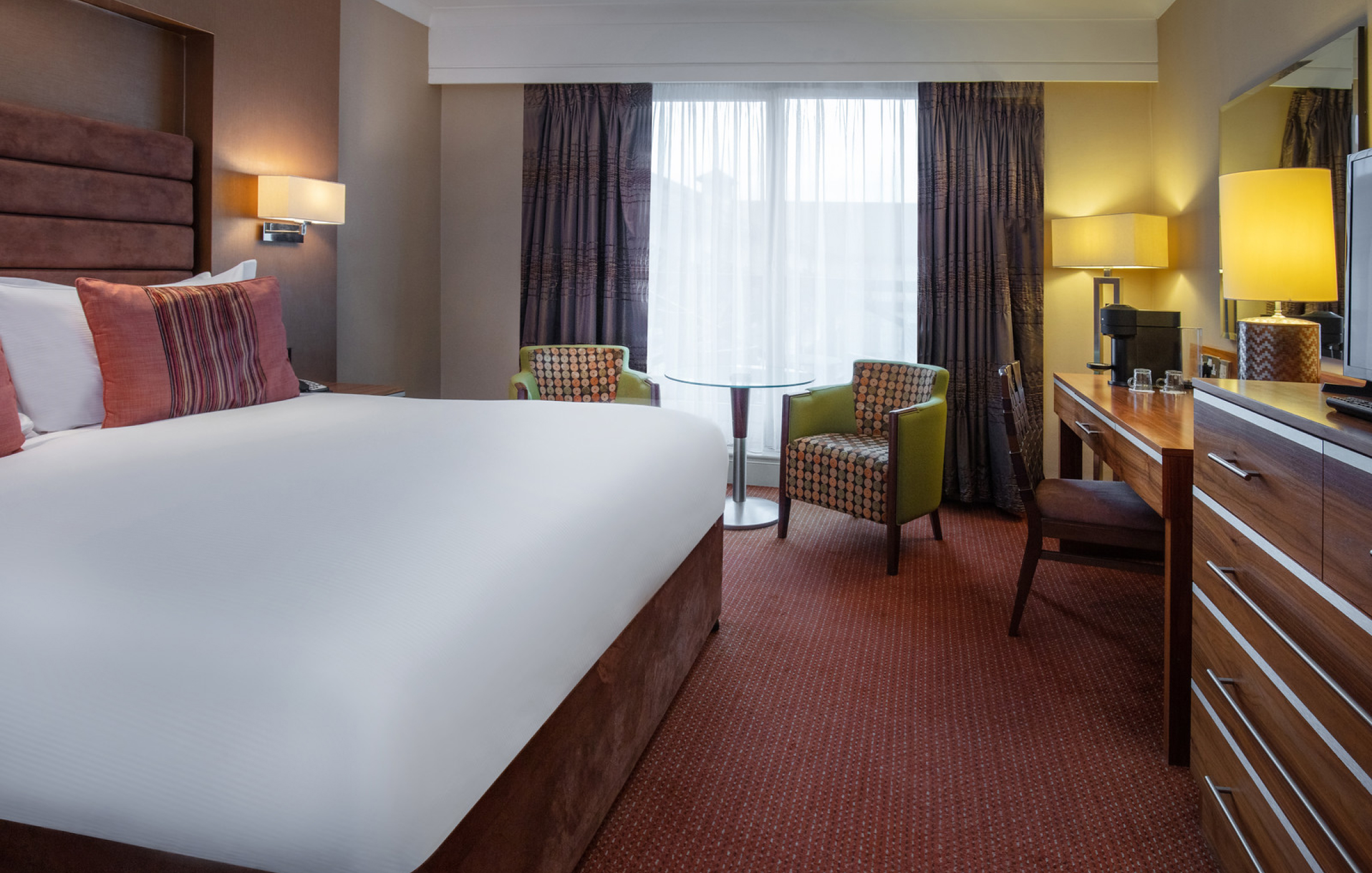 Stylish with a mixture of bold colours and relaxing, neutral tones, guests can enjoy supremely comfortable beds, bathrobes and additional space to stretch out, with complimentary treats including upgraded toiletries, a Nespresso coffee machine and complimentary mini bar with a selection of drinks.